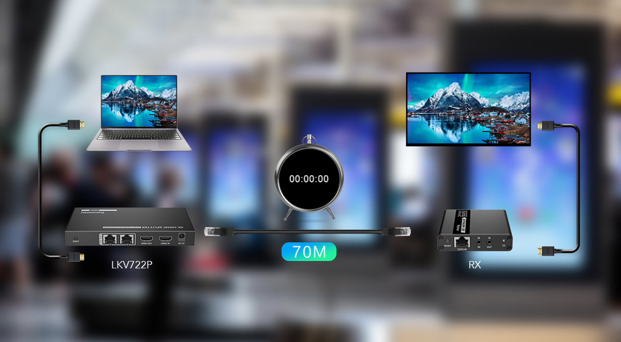 اسپلیتر اکستندر ۱ به 2 HDMI مدل LKV722P برند Lenkeng یک کیت ۱ به 2 (توسعه دهنده و تقسیم کننده) 1 ورودی 2 خروجی است. یک سیگنال ورودی HDMI را به 2 خروجی سیگنال یکسان توزیع می کند، و هر یک از سیگنالها را تا 70 متر گسترش میدهد. همین امر باعث شده است که این اسپلیتر اکستندر، یک کیت کاملا مرقوم به صرفه و اقتصادی باشد.