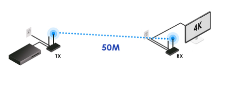 - سیگنال HDMI را تا فاصله 50 متری به صورت بی سیم انتقال می دهد و می تواند از دیوار عبور کند.