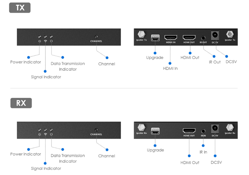 کانال قابل تعویض، انتقال پایدارتر. در اکستندر وایرلس HDMI کانال را میتوانید با فشار دادن دکمه روی Tx/Rx تغییر داد تا از عملکرد ضد تداخل پایدار و قوی اطمینان حاصل شود.