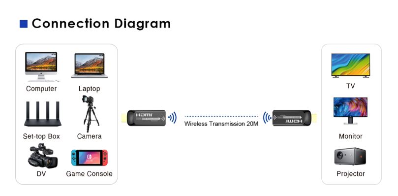 | نوع | اکستندر بیسیم HDMI (فرستنده + گیرنده) |