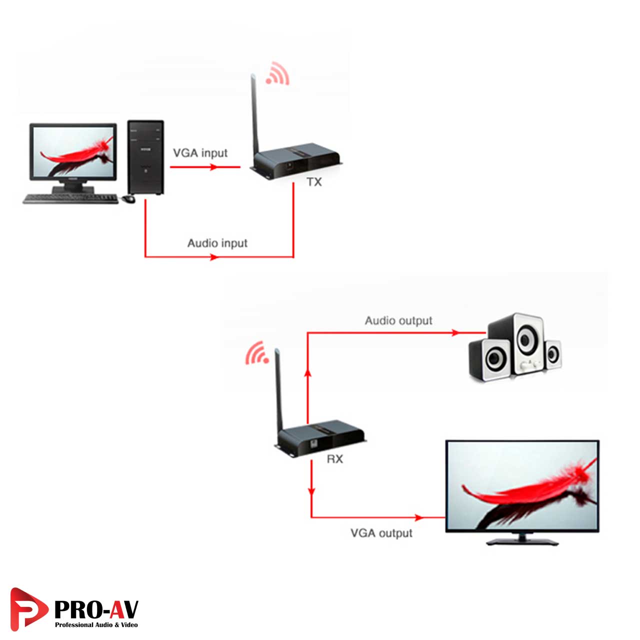 برای داشتن بهترین صدا و تصویر VGA با وضوح تصویر۱۰۸۰ و بیشترین مسافت انتقال تصویر تا ۲۰۰ متر، توصیه میشود در فضای باز یا بدون مانعی مانند دیوار و یا سطوح دیگر استفاده نمایید. از دیگر مزایای LKV388VGA نسبت به برندهای دیگر این است که بسته به فاصله (۱۰-۲۰۰متر) بهطور خودکار عملکرد خود را بهگونهای تغییر میدهد که بهترین کیفیت ممکن تصویر در خروجی قابل دریافت باشد.