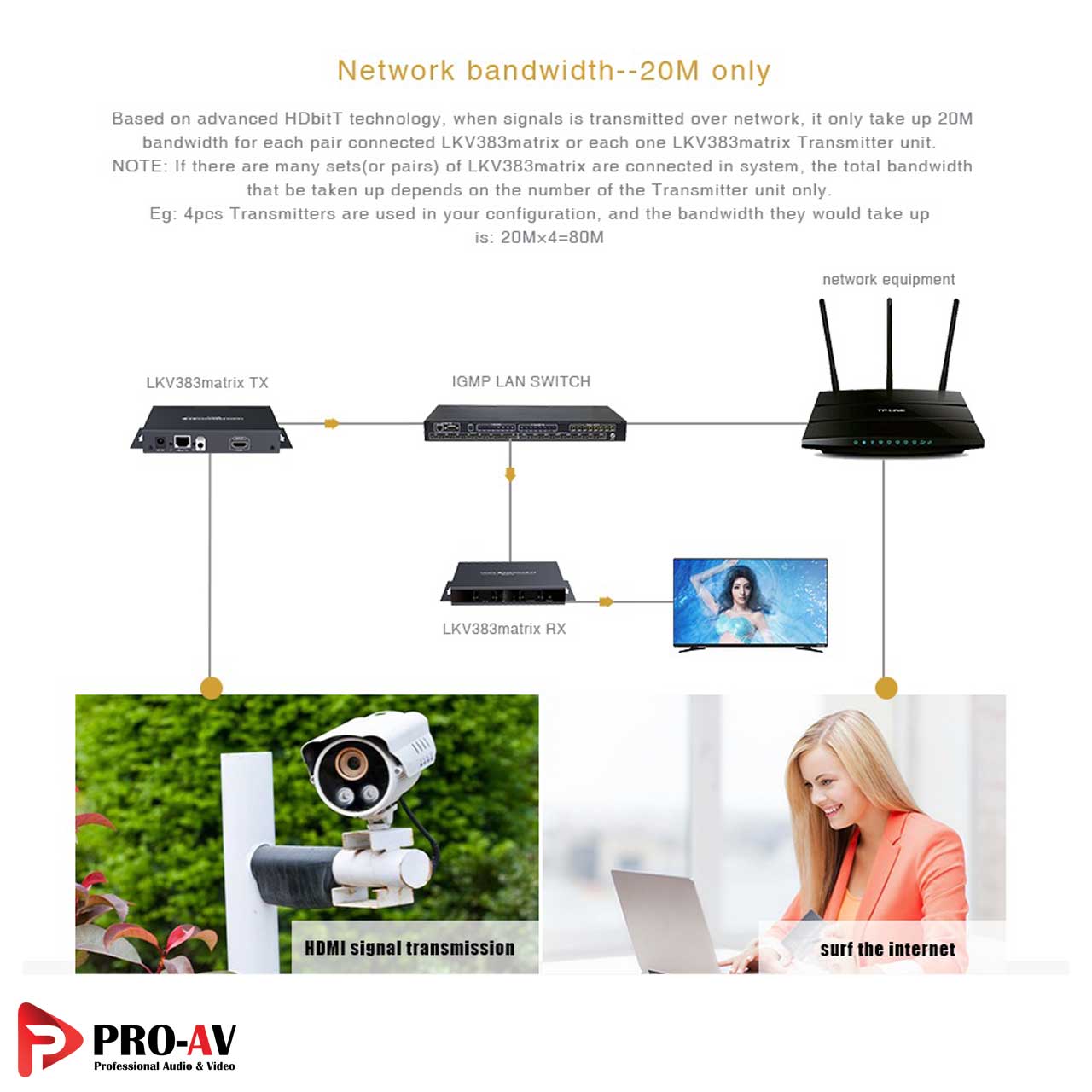 - ارسال تصویر منبع تا نمایشگر بر روی شبکه داخلی (یک یا چند سوئیچ یا روتر) به مسافت طولانی