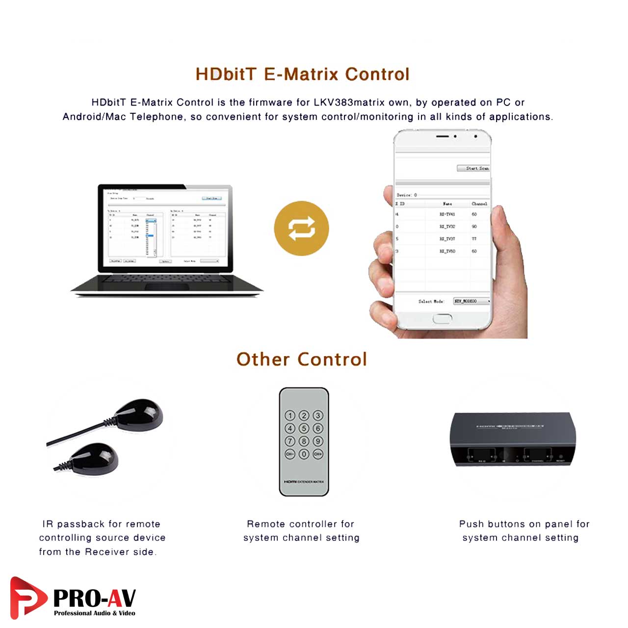 اکستندر HDMI مدل LKV383Matrix علاوه برافزایش فاصله انتقال تصویر HDMI بر روی کابل شبکه، این امکان را به کاربر میدهد که از راه دور و با استفاده از ریموت کنترل در مقصد (گیرنده RX)، دستگاه منبع تصویر خود را کنترل نماید.