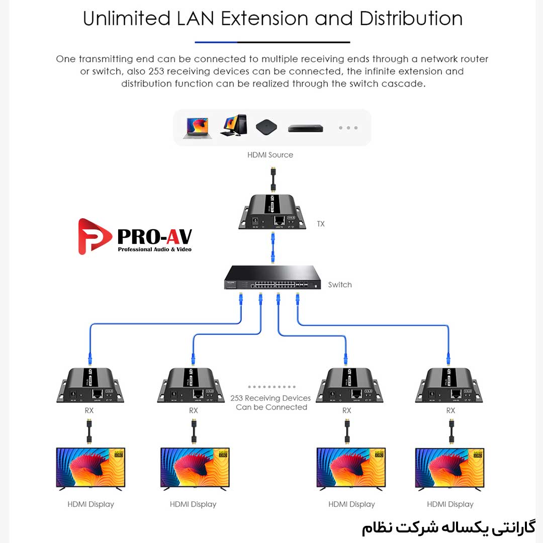 انتقال تصویر یک منبع به 1 تا 254 نمایشگر با استفاده از سوئیچ یا روتر شبکه