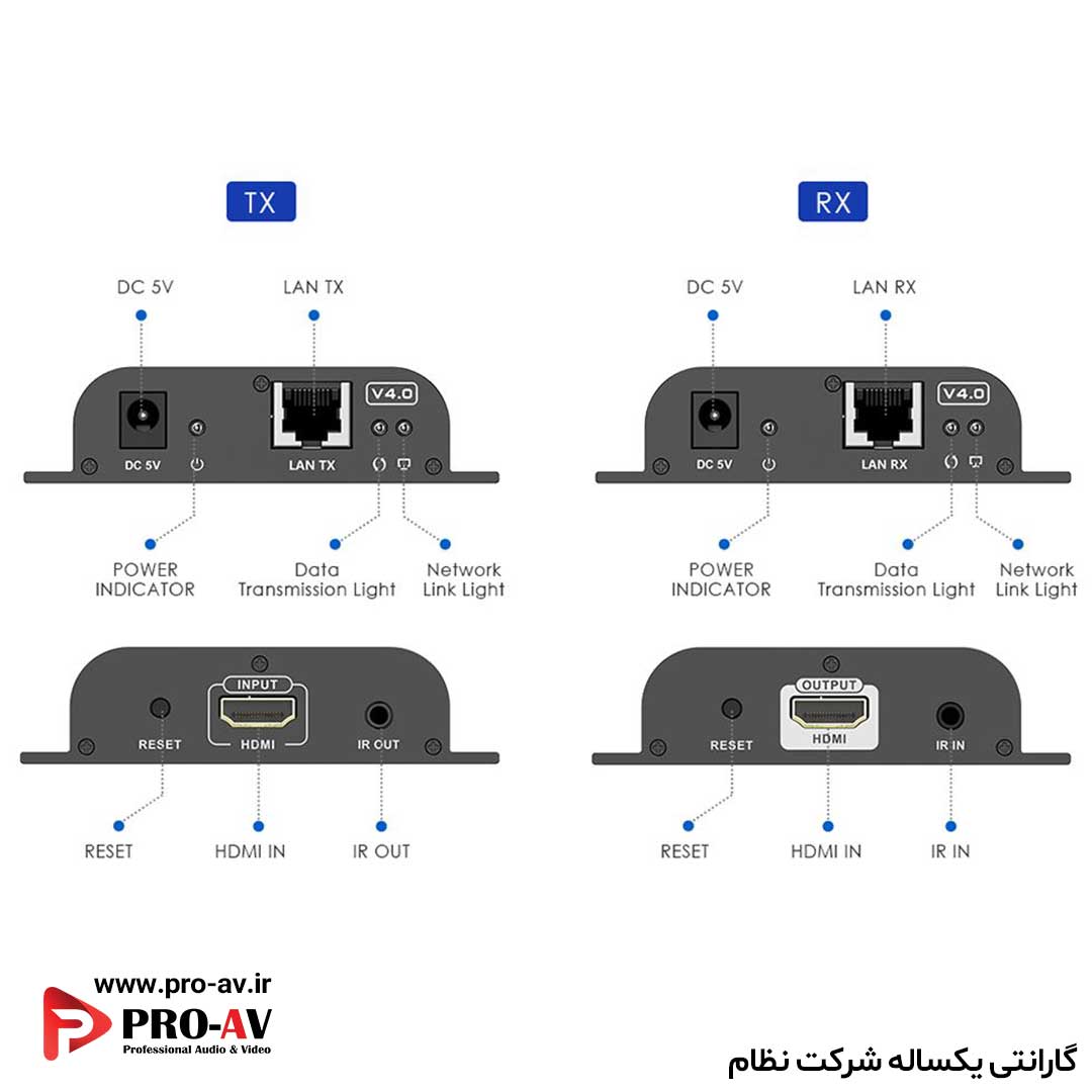 LKV383-4.0 از برند Lenkeng یک سیستم اکستندر HDMI حرفهای است که امکان انتقال تصویر و صدا با کیفیت Full HD 1080p@60Hz را تا فاصله ۱۲۰ متر از طریق کابل شبکه CAT5e یا CAT6 فراهم میکند. این سیستم شامل فرستنده (TX) و گیرنده (RX) است و برای محیطهای حرفهای صدا و تصویر طراحی شده است. قابلیت IR Pass-back امکان کنترل از راه دور دستگاههای منبع تصویر را فراهم میکند، بدون نیاز به دسترسی مستقیم به فرستنده.