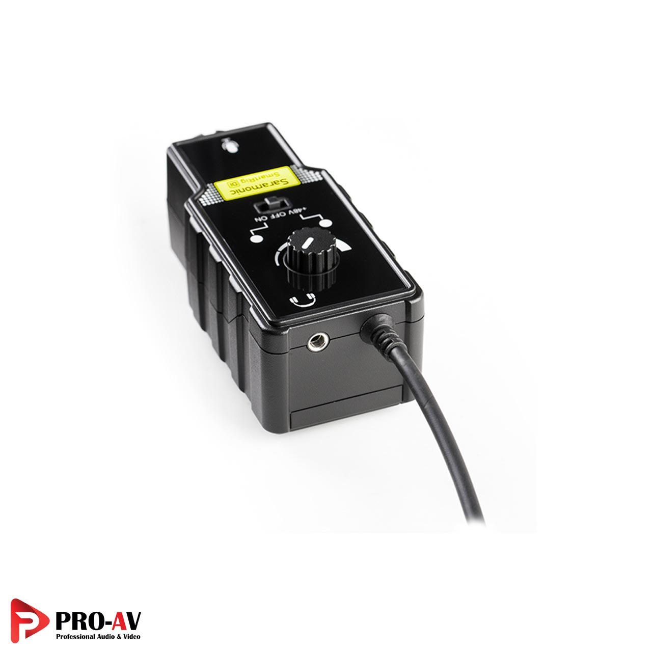 رابط صوتی تک کانال سارامونیک SmartRig Di از دو عدد باتری با سایز AA جهت منبع تغذیه استفاده می کند و می تواند منبع تغذیه فانتوم 48+ ولت را برای میکروفون‌های خازنی تامین نماید. همچنین یک ولوم کنترل سطح سیگنال خروجی بر روی دستگاه قرار داده شده است که سطح سیگنال را تنظیم می‌نماید. از دیگر ویژگی‌های رابط صوتی سارامونیک SmartRig Di می‌توان به خروجی هدفون با جک 3.5 میلی متری اشاره نمود. این رابط صوتی می تواند به راحتی با تسمه ای چسبی که در بسته بندی آن قرار داده شده است به بنده پایه میکروفون متصل شود.