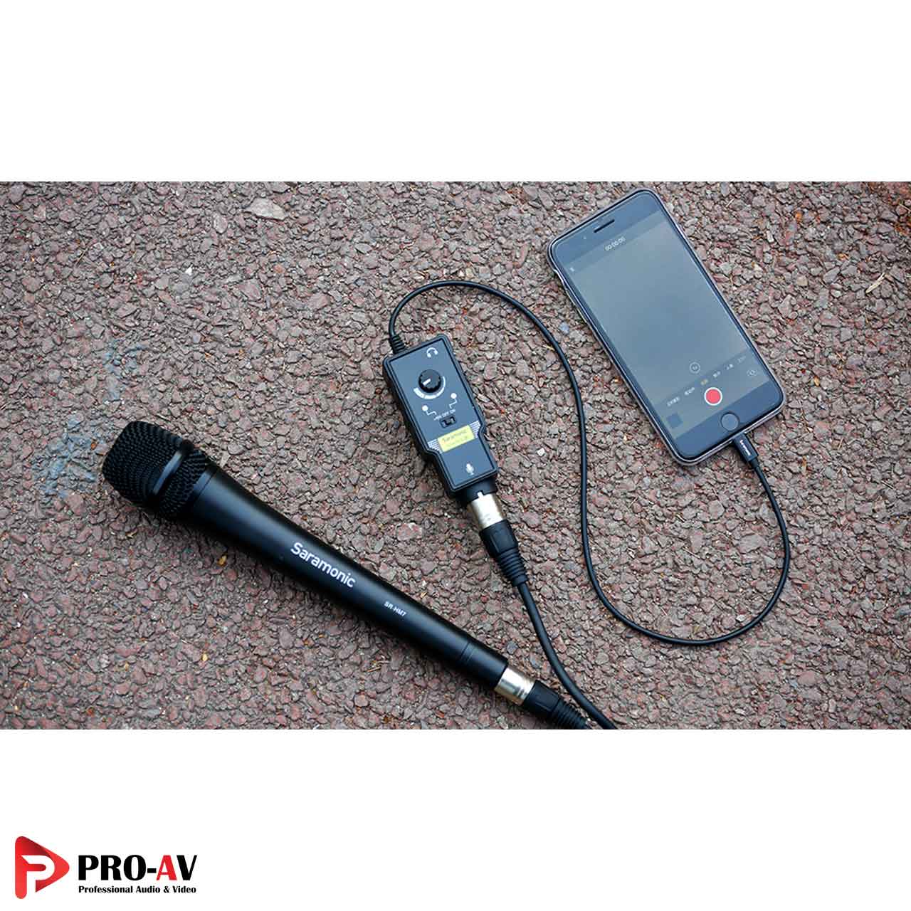 رابط صوتی Saramonic - SmartRig Di از سری تجهیزات تلفن همراه کمپانی سارامونیک است. SmartRig Di یک راه حل آسان برای اتصال انواع میکروفون ها با خروجی XLR و گیتار با خروجی لاین TRS به دستگاه های iPhone ، iPod touch یا iPad شما است. SmartRig DI به عنوان یک پری امپ میکروفون با کیفیت بالا ، به شما امکان می دهد از میکروفون های مورد استفاده بر روی صحنه یا میکروفون های استودیویی سطح بالا استفاده کنید. با توجه به امکان ، می‌توان به تولید موسیقی در سطح حرفه‌ای به وسیله با کیفیت‌ترین میکروفون‌ها بر روی دستگاه‌های iOS نمود.