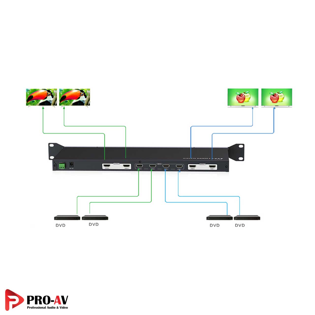 - انتخاب و سوئیچ لحظه ای بین ۴ منبع HDMI در ورودی و انتقال به ۴ خروجی HDMI