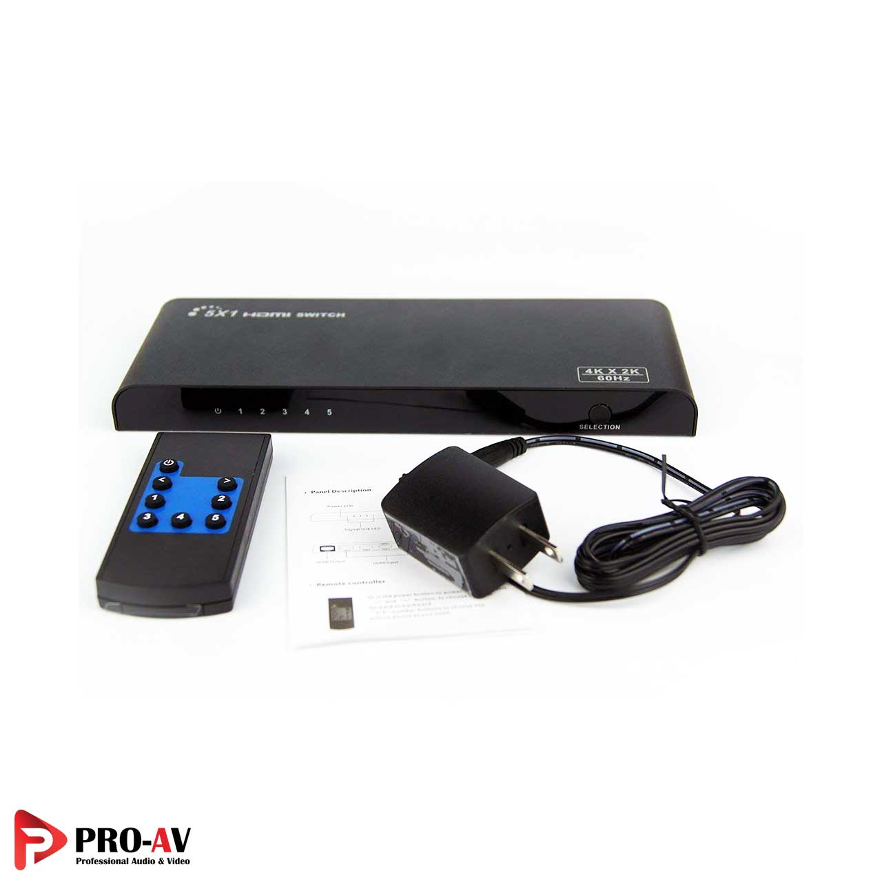 این سوئیچ HDMI ، علاوه برداشتن دکمهای بر روی پنل جلویی دستگاه برای انتخاب خروجی از میان ۵ ورودی HDMI، یک کنترل از راه دور همراه خود دارد. کاربر با استفاده از این ریموت کنترل، از راه دور بهراحتی میتواند ورودی تصویر HDMI موردنظر هرکدام از ۵ ورودی انتخاب و بر روی نمایشگر از مشاهده آن لذت ببرد.