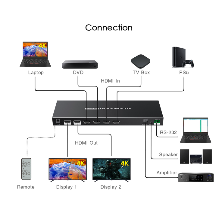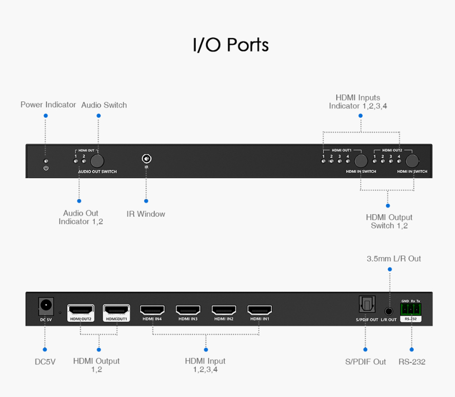 ویژگیهای ماتریکس سوئیچ 2×4 HDMI