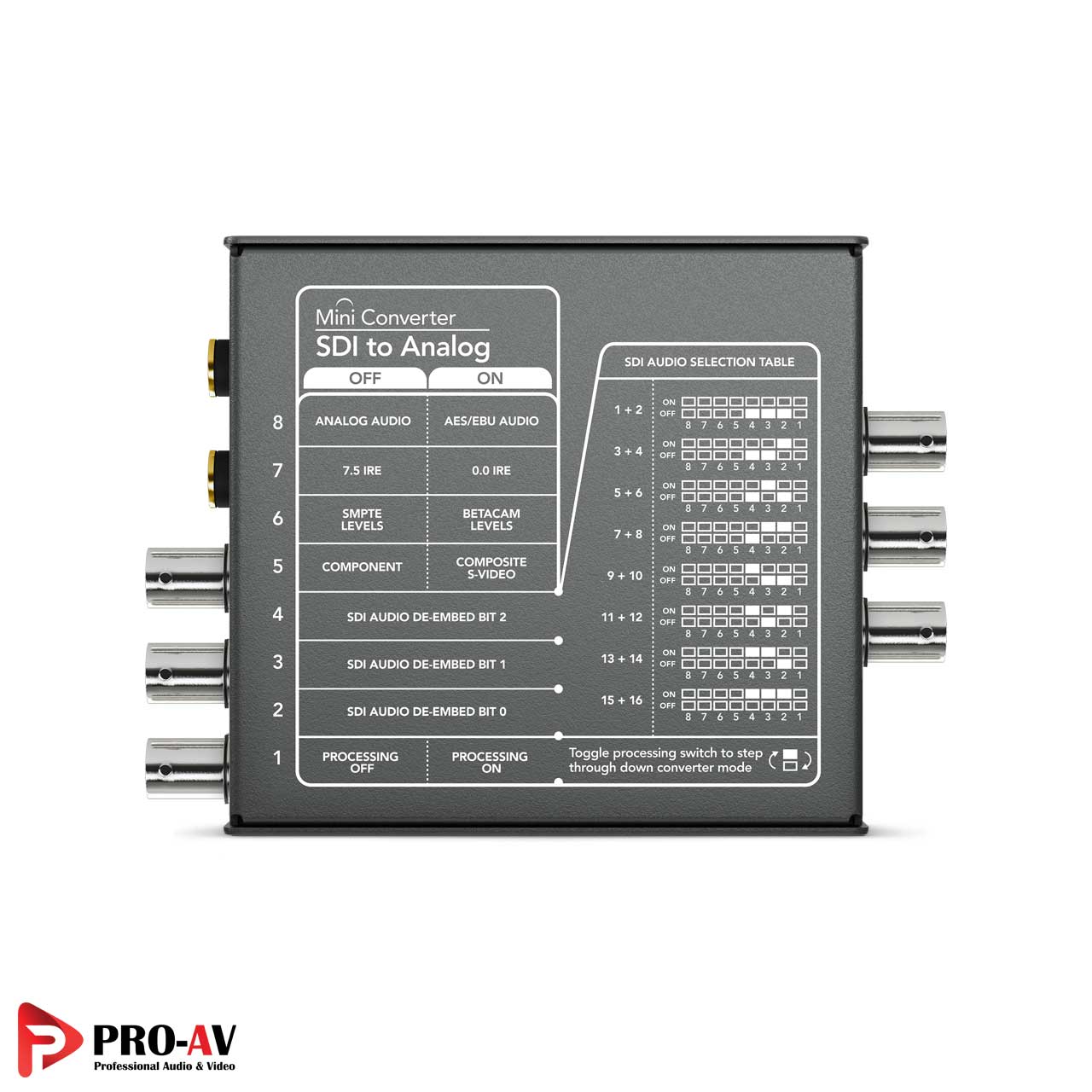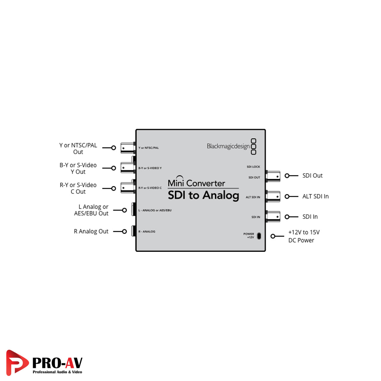 مبدل تصویر بلک مجیک مدل Mini Converter SDI to Analog تمام نیازهای شما جهت تبدیل سیگنال تصویر دیجیتال از روی درگاه SDI به سیگنال تصویر آنالوگ بر روی درگاههای SDI برآورده میسازد. جداسازی 2 کانال صوتی آنالوگ و یا 2 کانال AES/EBU دیجیتال از سیگنال تصویر دیجیتال SDI از دیگر امکانات این مبدل است.