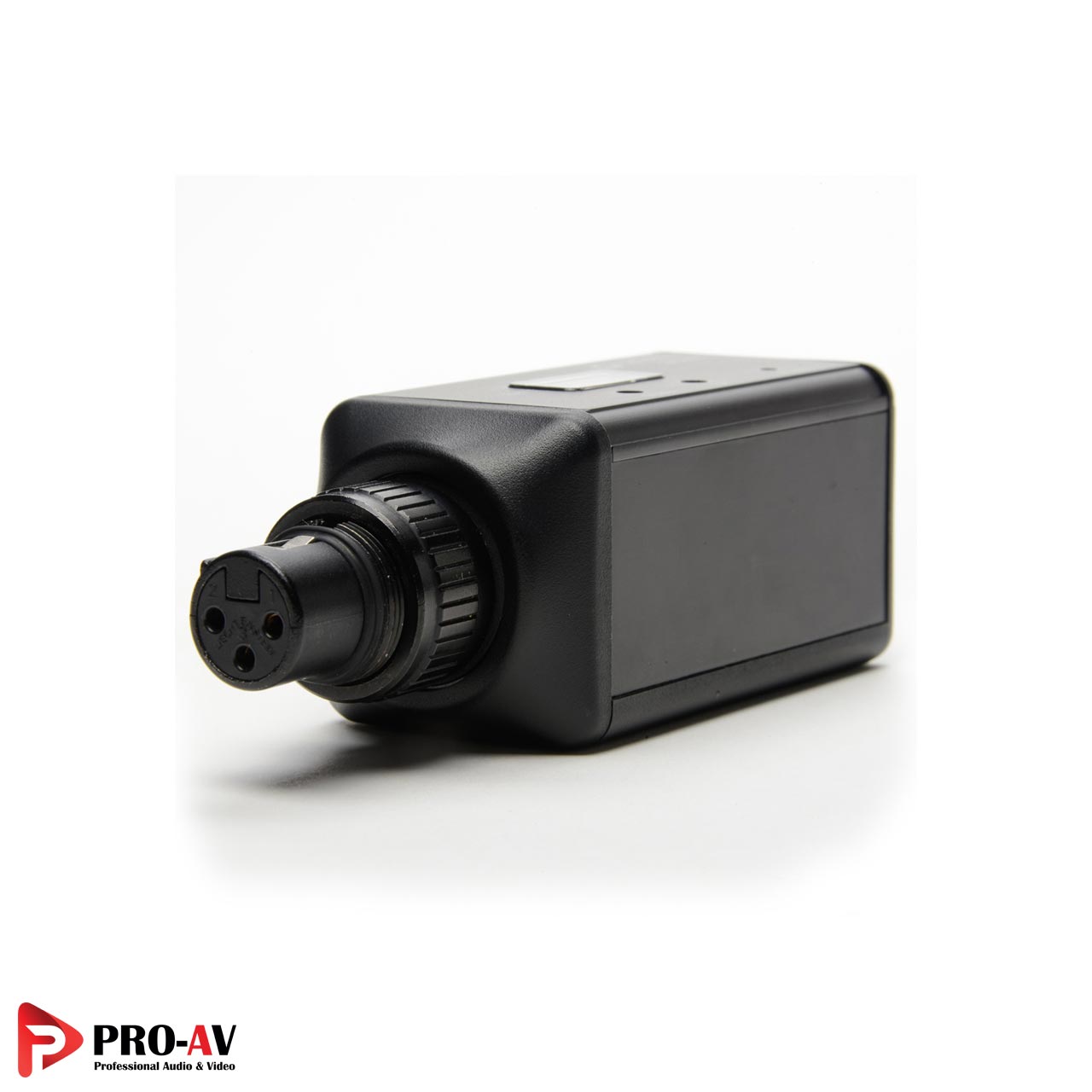 از مزایای استفاده منحصربهفرد این محصول در مقابل میکروفنهای دستی با فرستنده داخلی میتوان به این نکته اشاره نمود که در صورت تمام شدن باطری دستگاه یا خرابی آن در حین کار با این نوع از صدابَرها (میکروفنهای دستی با فرستنده داخلی) شما مجبور به تعویض باطری خواهید بود که امری زمانبر است و درصورتیکه خرابی آن عملاً میکروفن شما بلااستفاده است، درصورتیکه با استفاده از این فرستندههای وایرلس Plug-on حتی در صورت خرابی میتوانید از کابل بهجای این فرستنده استفاده نمایید و همچنین میتوانید انواع میکروفنهای یقهای Hardwire ، میکروفن شاتگان و داینامیک خود را به میکروفن وایرلس تبدیل نمایید.
