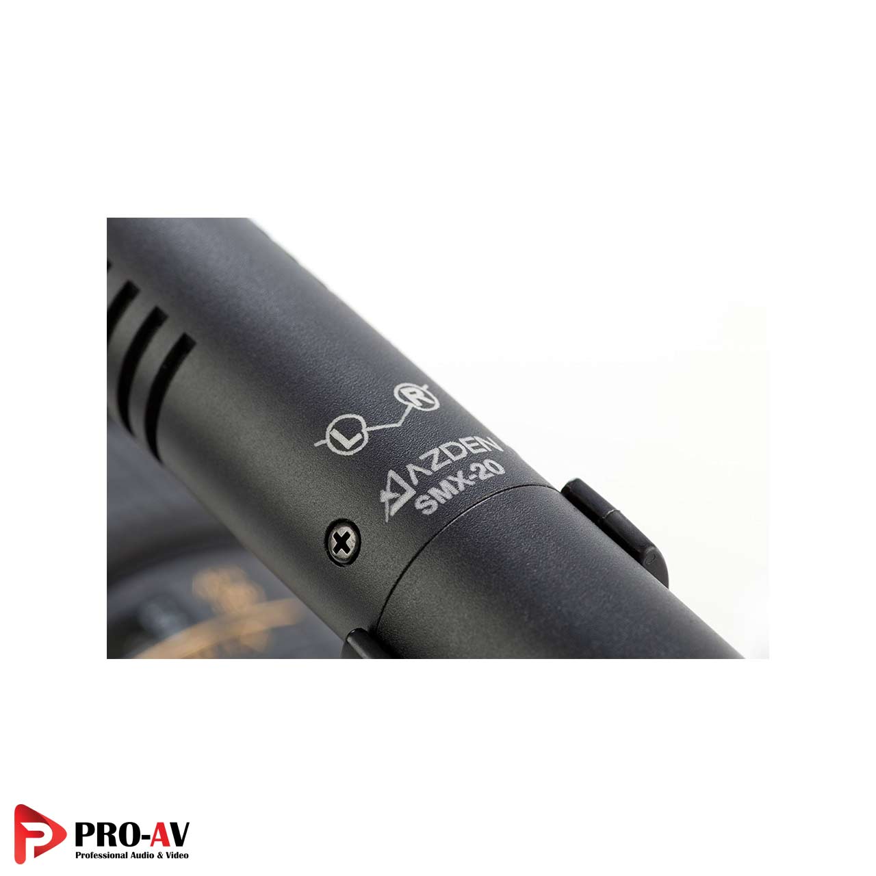 میکروفن روی دوربینی استریو AZDEN مدل SMX-20 یک میکروفن باکیفیت و با ابعاد بسیار مناسب و جمع‌وجور، جهت استفاده به همراه دوربین‌های DSLR است. این میکروفن با تنها ۱۲٫۷ سانتی‌متر طول از دو کپسول کوچک با الگوی قطبی کاردیوئید و زاویه ۱۲۰ درجه بهره می‌برد که توانایی ضبط صدا به‌صورت استریو را به کاربر ارائه می‌دهد. ازجمله دیگر ویژگی‌های این میکروفن می‌توان به پاسخ فرکانسی گسترده در بازه ۱۰۰ هرتز تا ۲۰ کیلوهرتز ، نویز و دیستورشن پایین و فعالیت با یک باتری ساعتی (LR-44) با ۱۵۰ ساعت استفاده مداوم و وزن مناسب ۷۲ گرم نام برد. همچنین SMX-20 دارای خروجی ۳٫۵ میلی‌متری استریوست و می‌توان آن را بر روی درگاه فلاش انواع دوربین نصب نمود.