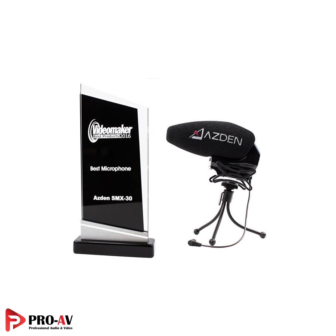 میکروفن روی دوربینی AZDEN مدل SMX-30 که بهعنوان بهترین میکروفن جهت ضبط ویدیو توسط مجله Videomaker در سال ۲۰۱۶ انتخابشده است ازجمله محصولات حرفهای سری SMX کمپانی AZDEN است. این میکروفن با توجه به نوع طراحی خاصش ، گزینه بسیار مناسبی برای استفاده به همراه دوربینهای DSLR و جهت مصارفی همچون مصاحبههای خبری، جشنهای عروسی و سخنرانیها و ... است.