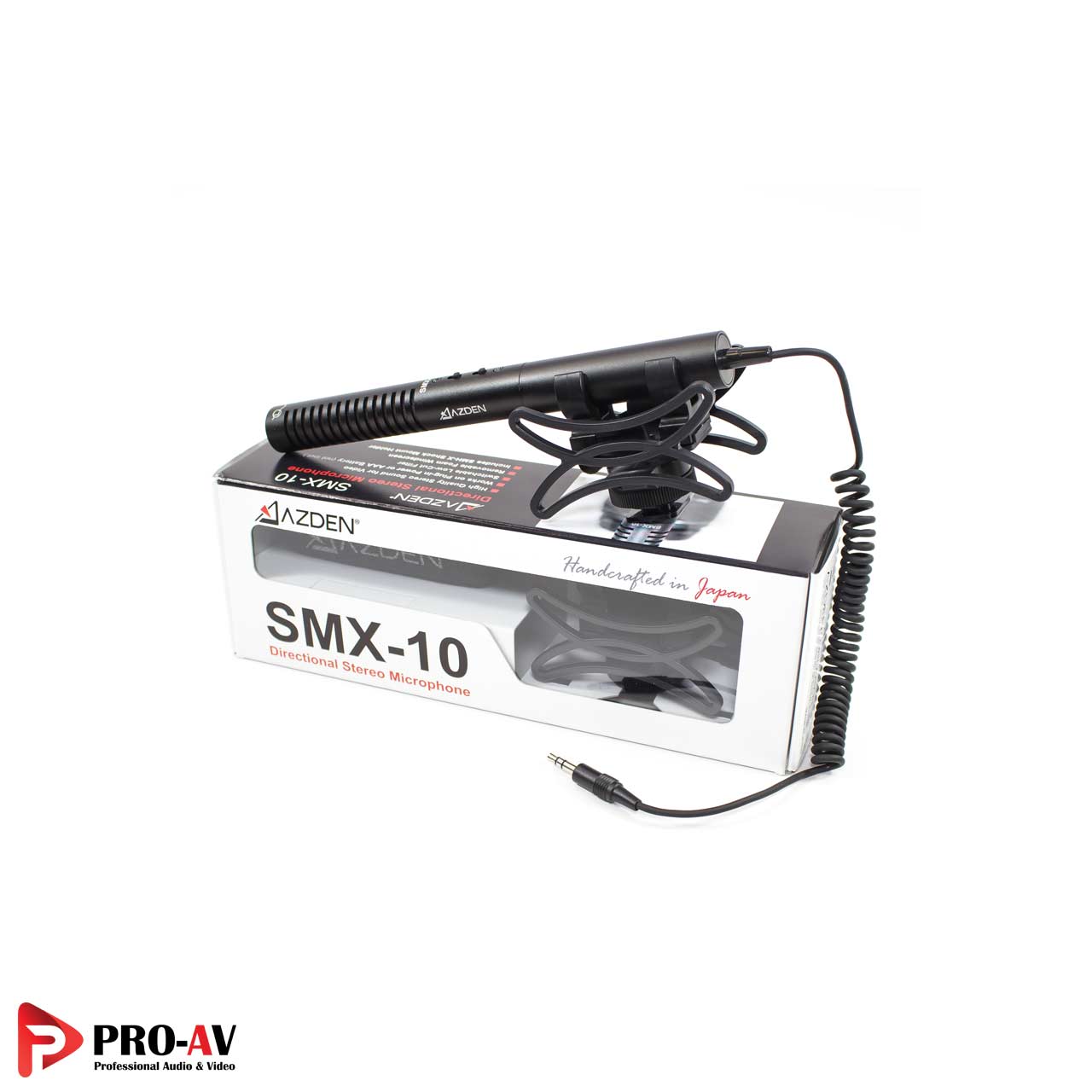 میکروفن شاتگان ویدیویی استریو AZDEN مدل SMX-10 ازجمله محبوبترین میکروفنهای شاتگان به همراه دوربینهای DSLR ، بدون آیینه و ... در بازار است. ازآنجاییکه میکروفنهای داخلی دوربینهای DSLR از کیفیت و ساختار مناسبی جهت ضبط صداهای باکیفیت برخوردار نیستند و عمدتاً صداهای ضبطشده توسط آنها دارای نویز و صداهای ناخواسته و مزاحم هستند. کمپانی AZDEN با طراحی و ساخت میکروفن SMX-10 راهحلی مناسب و مقرونبهصرفه را برای کاربران دوربینهای DSLR، ضبط اجرای زنده موسیقی و صدای طبیعی محیط ارائه نموده است. میکروفن SMX-10 با بهرهگیری از دو کپسول با الگوی قطبی Cardioid امواج صوتی را بهصورت استریو دریافت مینماید.