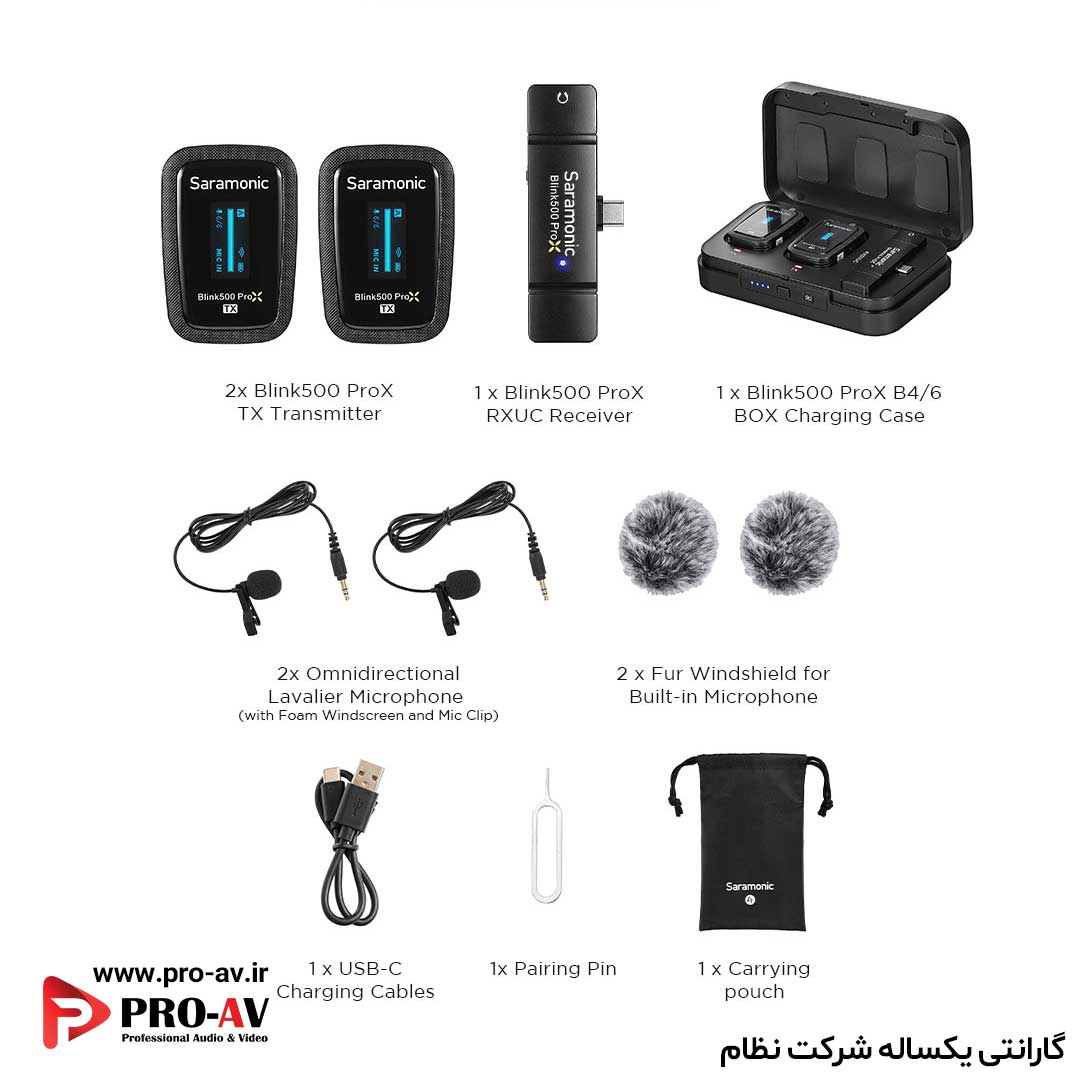 محتویات پکیج میکروفون بی سیم دوتایی Blink500 Prox B6