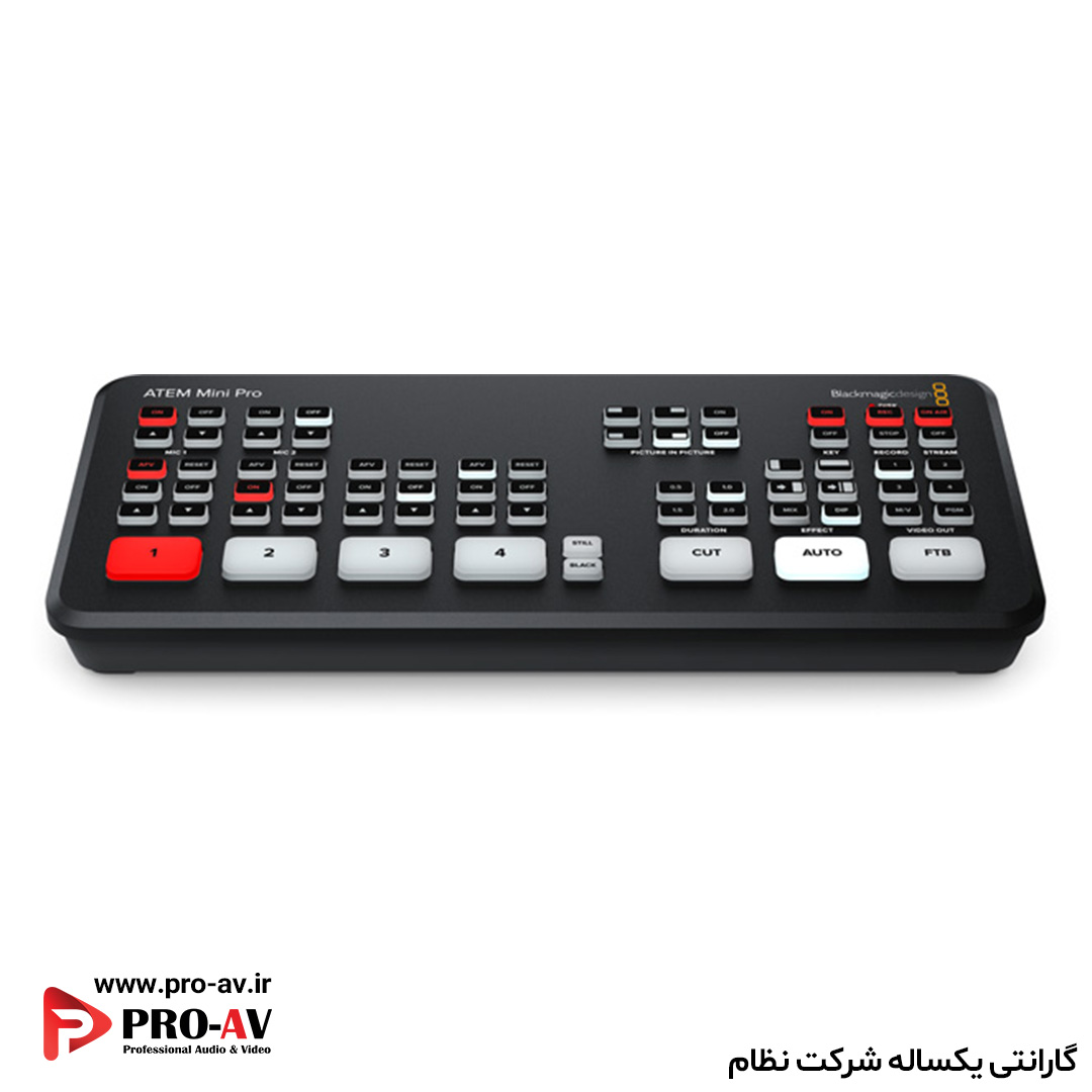 فروشگاه Pro-AV.ir بهعنوان نماینده بلک مجیک در ایران، کلیه محصولات این برند از جمله ATEM Mini Pro را با گارانتی معتبر شرکت نظام، خدمات پس از فروش تخصصی و مشاوره حرفهای ارائه میدهد. با خرید از ما، اطمینان از اصالت کالا، قیمت رقابتی، ارسال سریع و پشتیبانی فنی واقعی خواهید داشت.