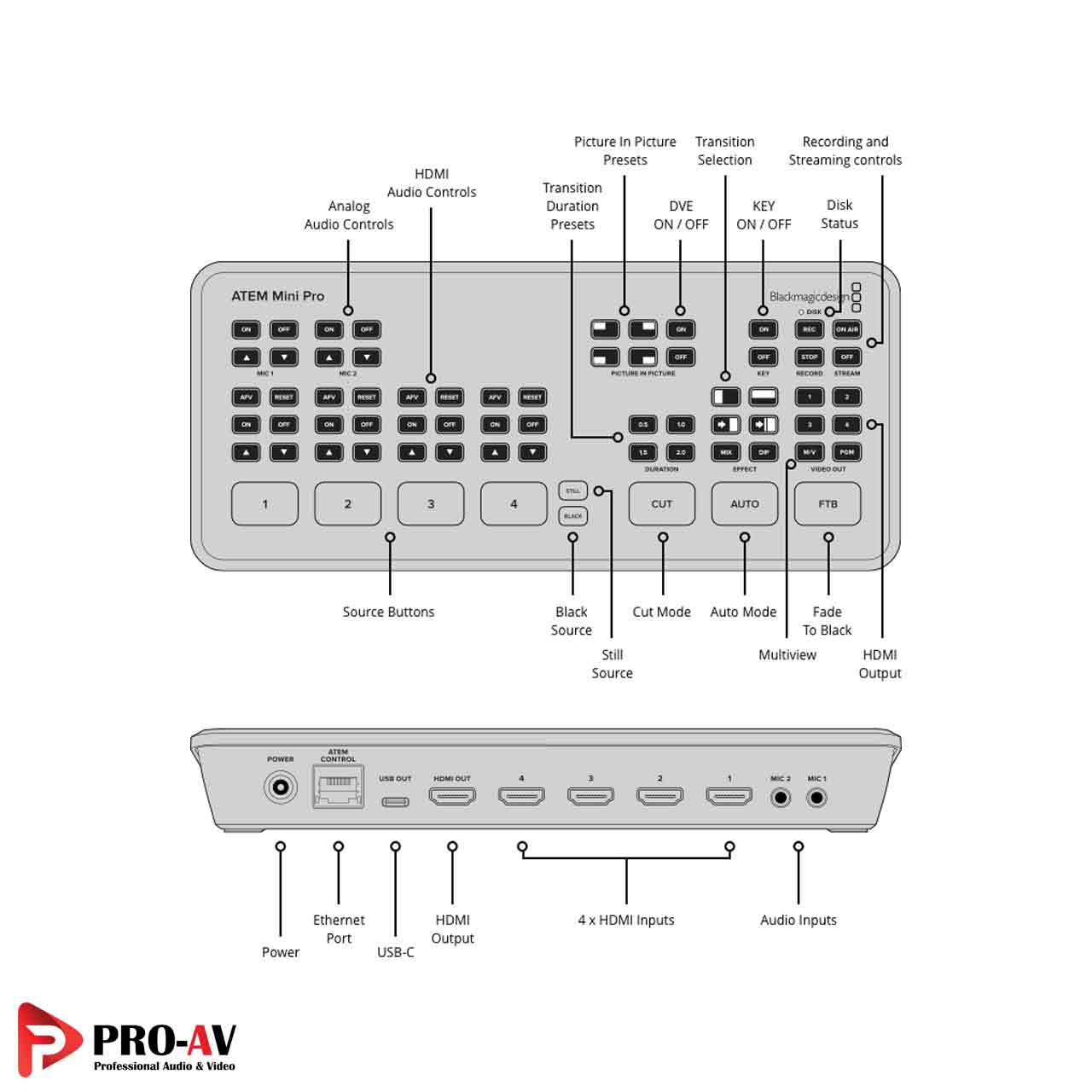 مشخصات فنی سوئیچر ATEM Mini Pro: