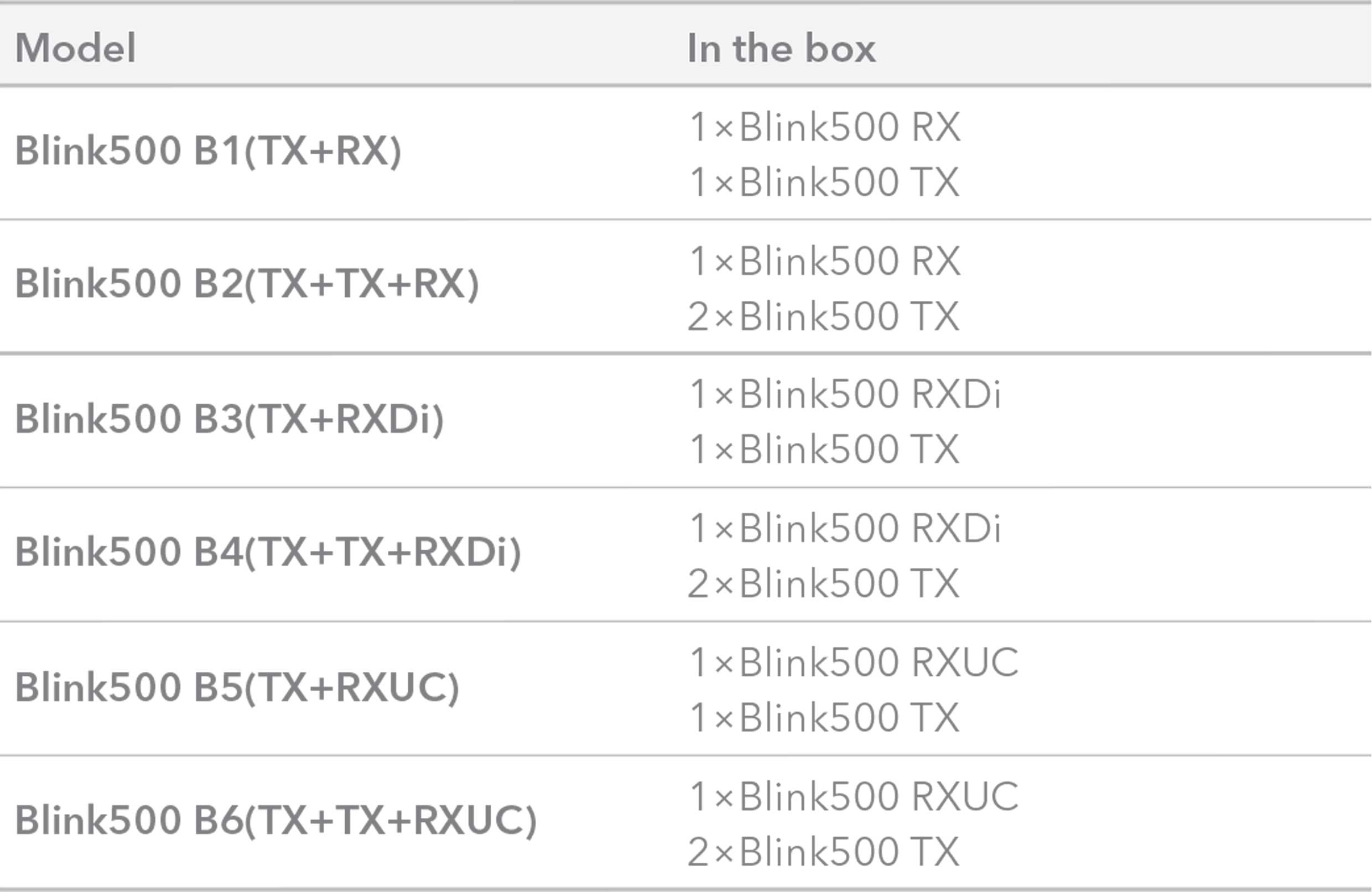دو یونیت فرستنده و گیرنده  سری میکروفون بی‌‌سیم Blink500 به آسانی و تنها بعد از روشن نمودن آنها به صورت خودکار با یکدیگر هماهنگ می شوند و ثابت شدن چراغ LED بر روی آنها نشان از این هماهنگ‌سازی است. فرستنده این مجموعه علاوه بر میکروفون یقه‌ای رایج در تمامی میکروفون‌های بی‌سیم برای سخنرانی و مصاحبه‌ها و ... استفاده می شود، از یک میکروفون داخلی با الگوی قطبی تمام جهتی بهره می‌برد که می‌تواند در شرایط کاربری گوناگون به عنوان یه میکروفون دستی مورد استفاده قرار گیرد. گیرنده‌ها نیز در این خانواده تماما بصورت دو کانال بوده و همزمان می‌تواند به دو گیرنده متصل شود.