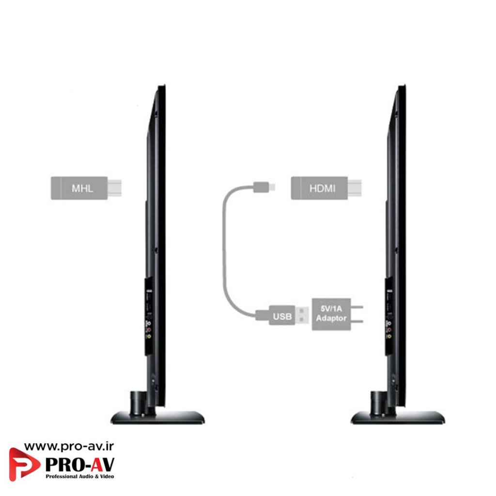 اگر دستگاه شما از MHL پشتیبانی نمیکند، از حالت HDMI استفاده کرده و کابل USB را برای تأمین برق به منبع تغذیه متصل نمایید. در این حالت دکمه کنار دانگل باید روی حالت USB قرار گیرد.