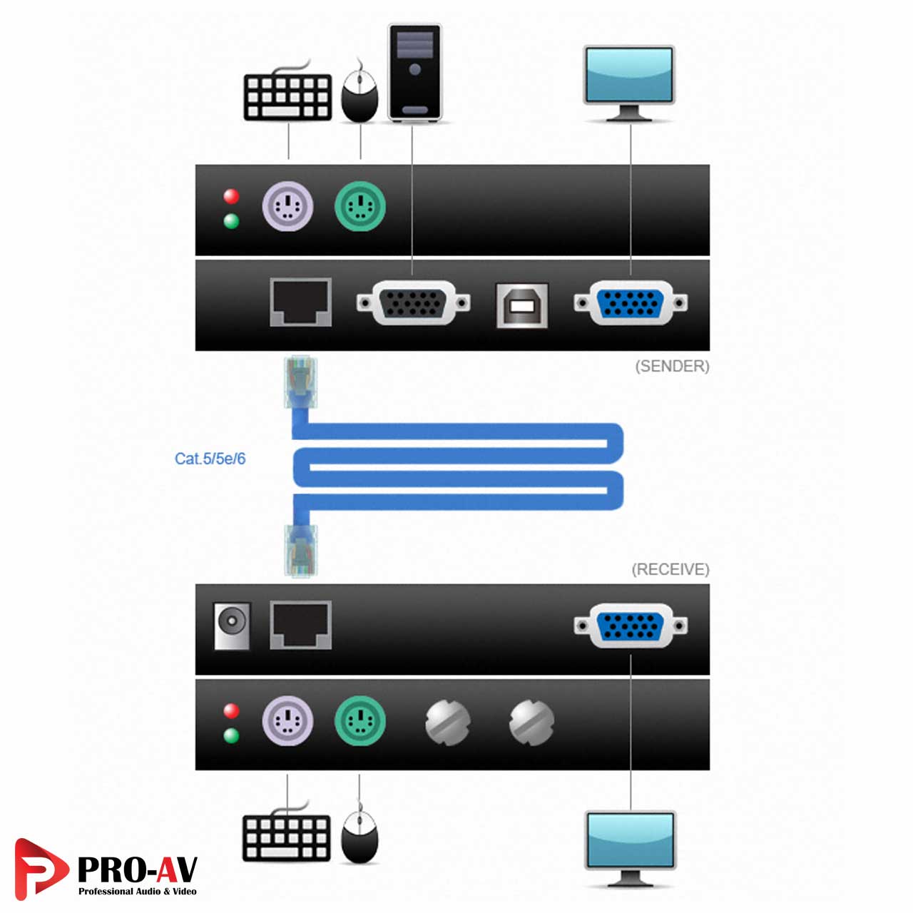 - KVM اکستندر شامل دو بخش فرستنده (UKE-100-TX) و گیرنده (UKE-100-RX)