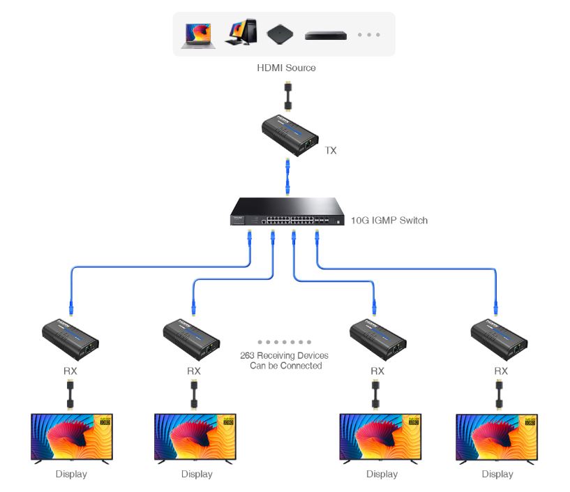 برای اکستندر LKV373A-5.0 امکان تهیه جداگانه واحد گیرنده (RX) نیز وجود دارد، که این ویژگی برای پروژههایی با نیاز به تعداد گیرنده بیشتر از تعداد فرستنده بسیار کاربردی است. در سناریوهایی مانند نصب تصویر در چندین اتاق، سالنهای متعدد، ساختمانهای بزرگ یا فضاهای اداری با چند نمایشگر، کاربران میتوانند تنها گیرنده اضافه خریداری کنند بدون نیاز به تهیه یک ست کامل فرستنده-گیرنده جدید. این روش موجب کاهش هزینه کلی، بهینهسازی مدیریت سیمکشی و انعطافپذیری بیشتر در توسعه سیستم میشود، بهویژه زمانی که قصد دارید تصویر یک منبع HDMI را به چند نقطه مختلف ارسال کنید یا در آینده سیستم را گسترش دهید.